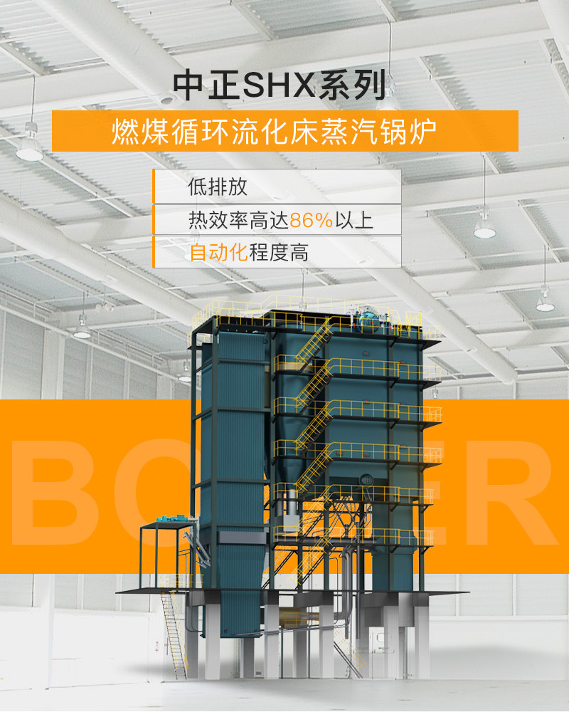 SHX系列循環流化床蒸汽鍋爐燃燒(CFBC)技術作為一種新型成熟的高效低污染清潔煤技術,具有許多其它燃燒方式沒有的優點。