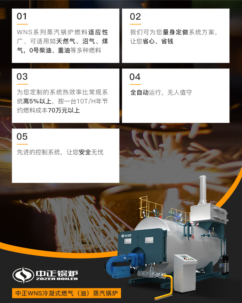 WNS系列燃氣(油)鍋爐具有安全可靠、高效率、節(jié)能環(huán)保、維護方便、經久耐用、全自動智能控制等特點。